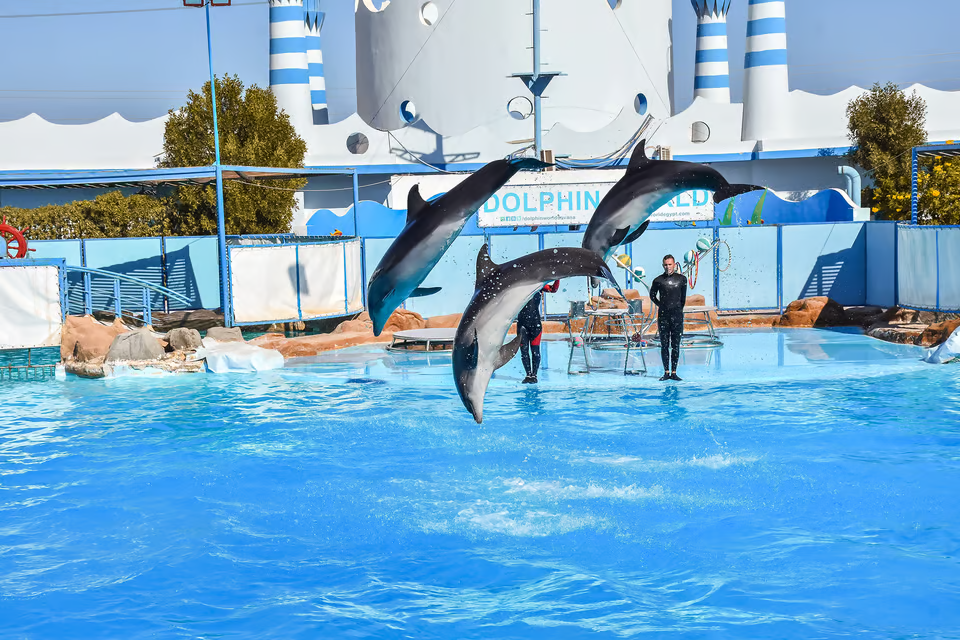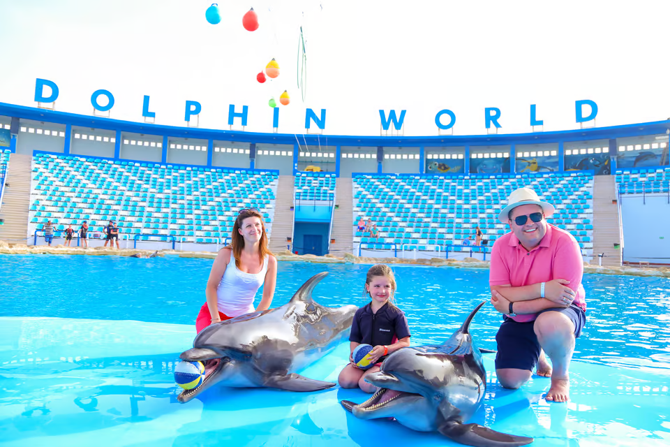 Create unforgettable memories for you and your family at the amazing Dolphin Show Experience in Hurghada , where you can enjoy a spectacular dolphin show and even upgrade your experience to swim with dolphins. Get closer to these remarkable sea creatures, watch their playful tricks, and discover their incredible intelligence. Whether you choose to sit back and enjoy the show, dive in for a swim, or do both, this is one of the most popular family activities in Hurghada and a must-do Red Sea excursion.
