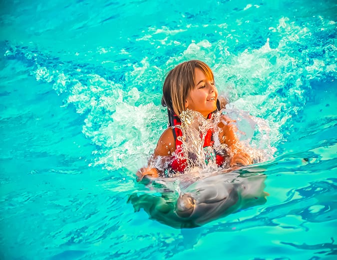 Enjoy a magical 10-minute swimming experience with dolphins