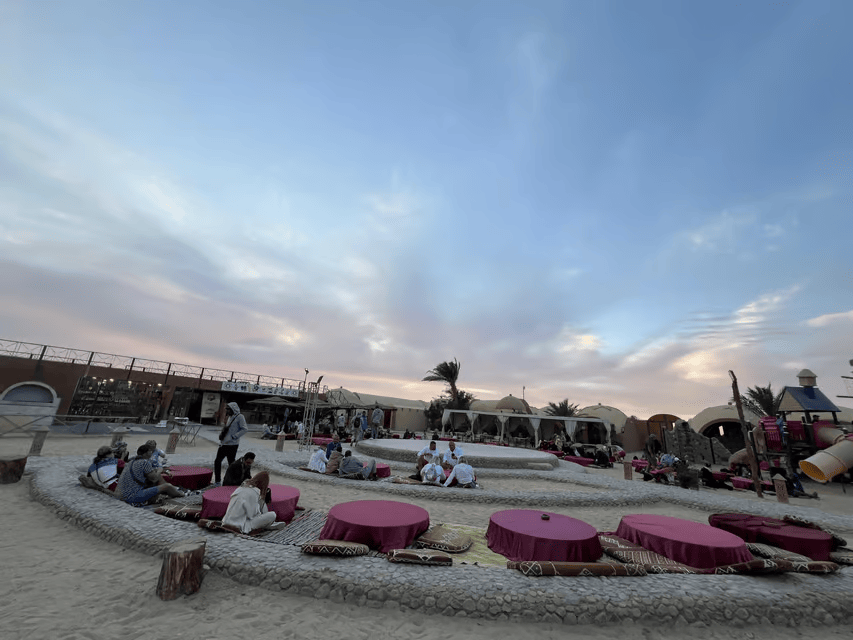 The play of colors in the afternoon sun and the desert with its inhabitants will inspire you to slow down. The Bedouins are already waiting for you and welcome you to their village with your camels for a ride. The adventure continues: A camel ride can be very relaxing, because the animals are peaceful and you will enjoy the ride into the sunset very much – an unforgettable moment to experience the sunset on the top of a sand dune.